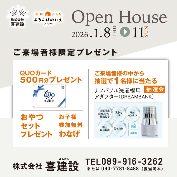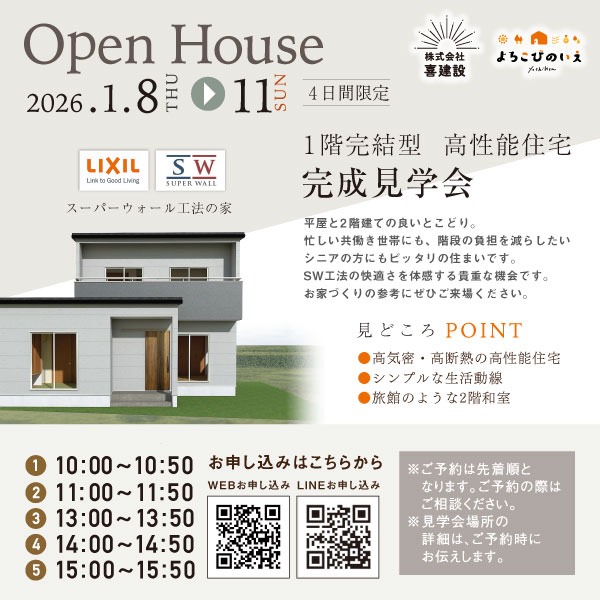 1月8日(木)・9日(金)・10日(土)・11日(日)☆完成見学会開催☆お施主様のご厚意により、完成見学会を開催させていただきます😊